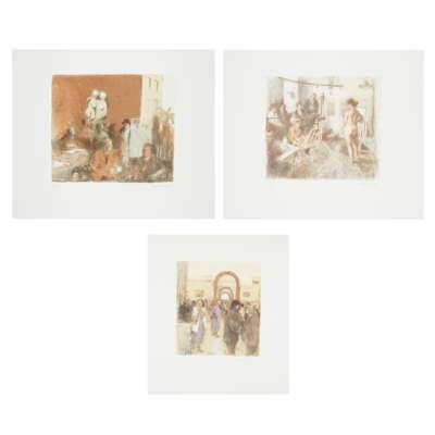 THREE PRINTS: 'LIFE CLASS,' 'PRIVATE VIEW' AND 'GALLERY CAFE'