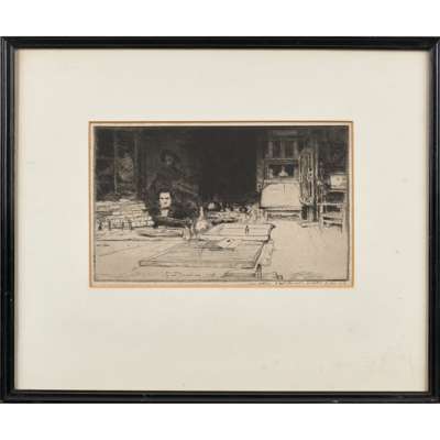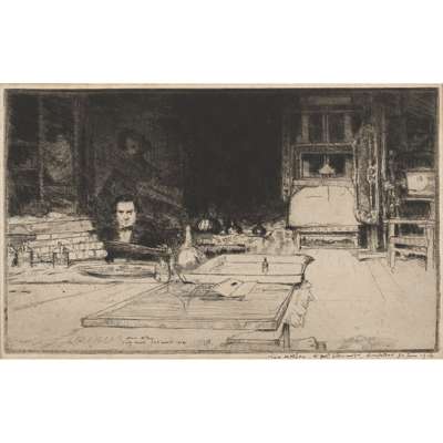 Etching, signed, inscribed ‘Earls Court’ and dated '23 March 1914' to plate, signed, inscribed ‘to Mrs Stewart, Hampstead’ and dated ‘30 June 1914’ to margin