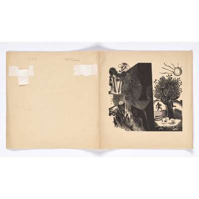 Heaven and Hell, Wood engraving, with printed message inside ‘All good wishes for Christmas and the New Year, from Dick and Naomi Mitchison. River Court, Hammersmith Hall, London, W.6', further printed with excerpt of The Rebel by Hilaire Belloc (2)