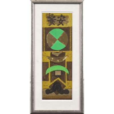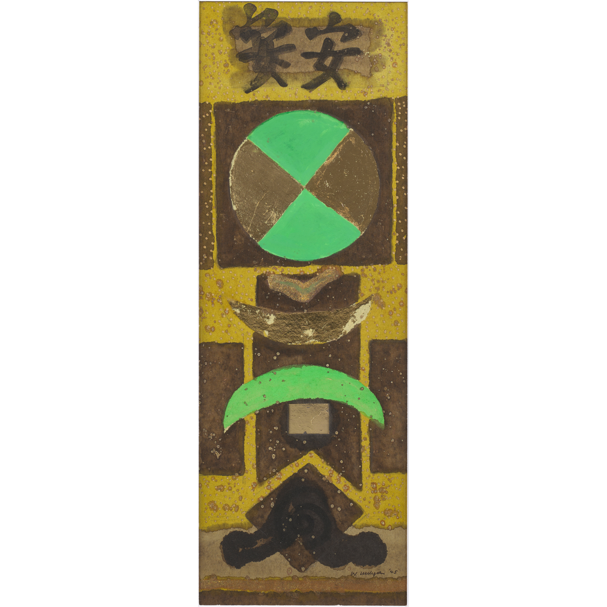 Signed and dated '05 lower right, watercolour, collage and metal leaf