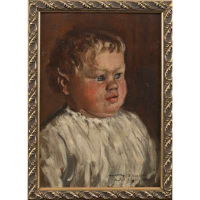 This lot includes a black and white photograph of the artist painting a portrait of the Baby Macduff.