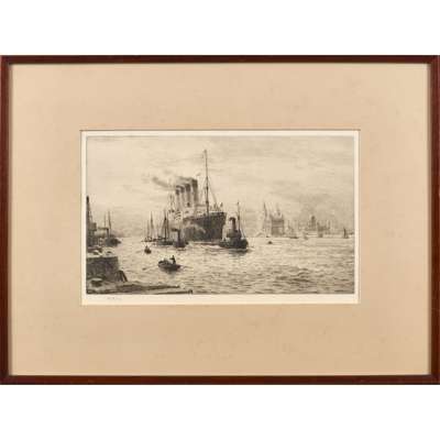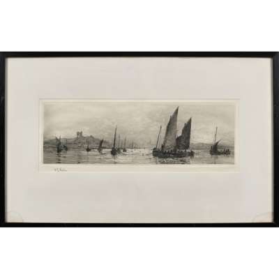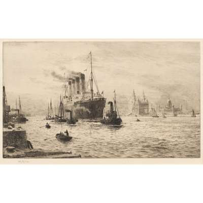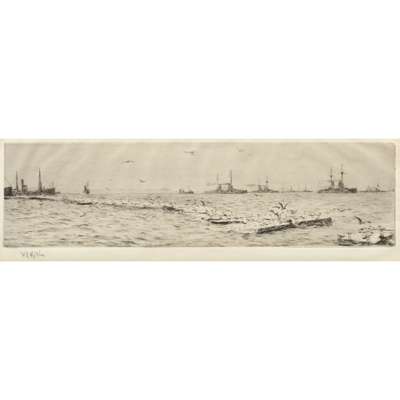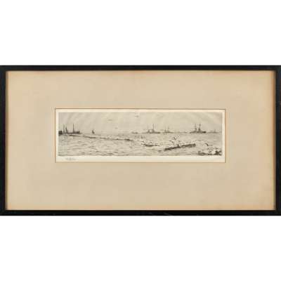 THREE ETCHINGS: 'LIVERPOOL FROM BIRKENHEAD,' 'TARBERT LOCH FYNE' & 'GERMAN FLEET AT SCAPA FLOW'
