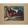 McCance ceased sculpting and painting in the early 1930s, owing to the significant workload at the Gregynog Press. It was not until 1933, having departed the Press and relocated to Wolverhampton, that he began to work on figurative red clay compositions which he fired at a local brickworks. Their curvature and solidity exhibit an affinity with the contemporary output of Henry Moore and Frank Dobson. These sculptures feature repeatedly throughout McCance’s still life paintings of the 1940s, and while McCance’s style had by this point changed substantially, his use of sculptural studio props endured.