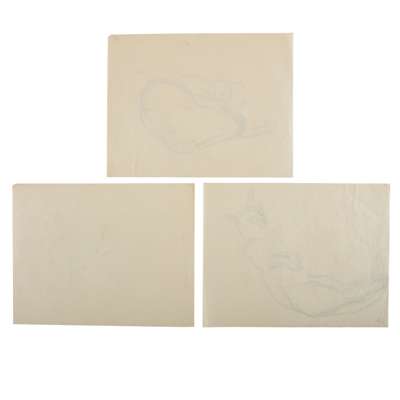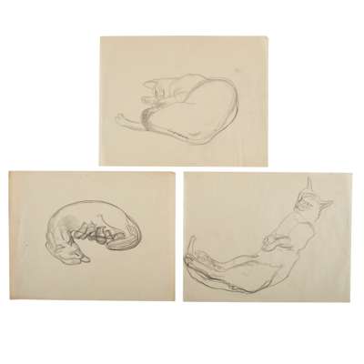 THREE GRAPHITE STUDIES OF CATS SLEEPING