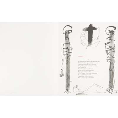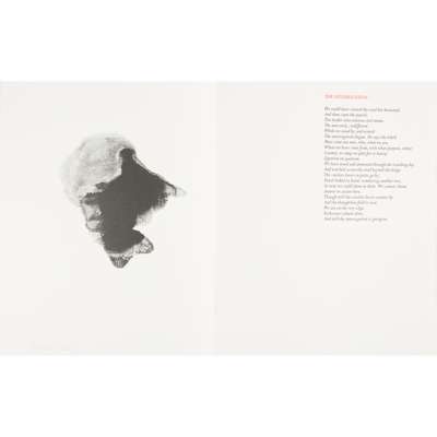 ‘I do not mean my lithographs to have a literal connection with the poems I have chosen by Ewin Muir. I have tried to relate my unconscious and surreal perceptions to those of the poet. The poems, re-read over many years, contain layered depths of unconscious feeling and tension. The poet never realised that he was a true man of genius; he remained a man of doubt’.