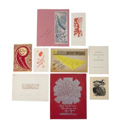 Five hand-printed cards with handwritten personal inscriptions from the artist;