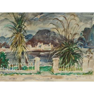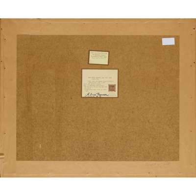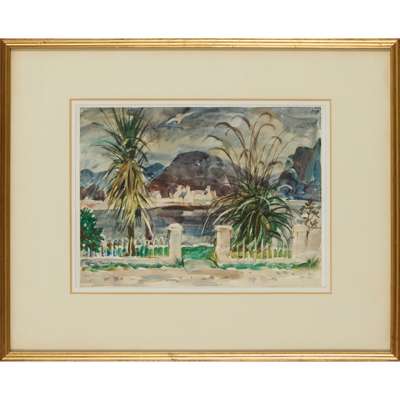 Signed lower left, with Artist's studio stamp to label verso, watercolour