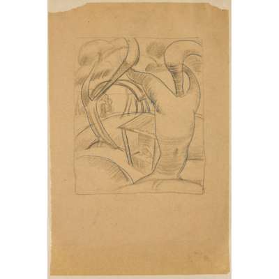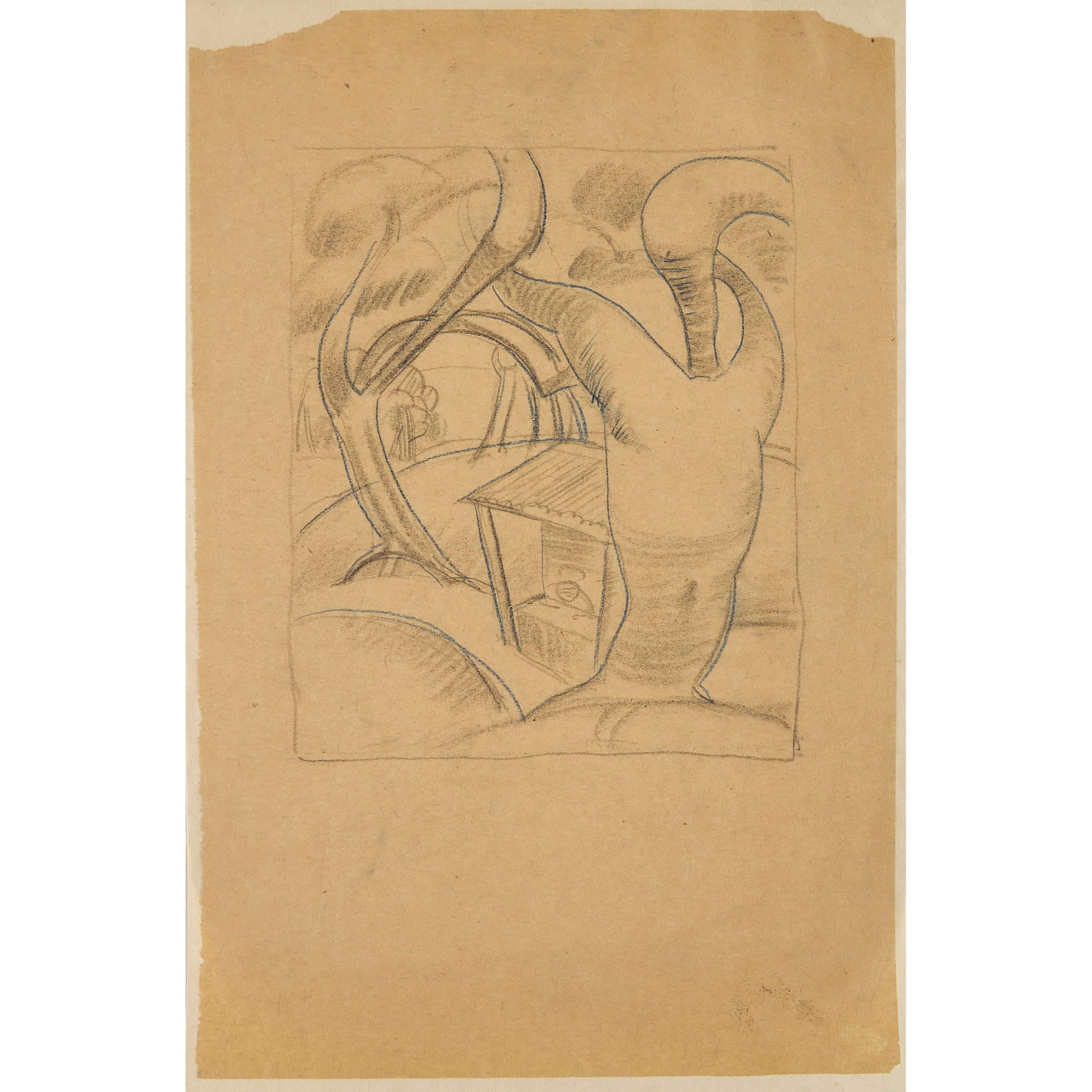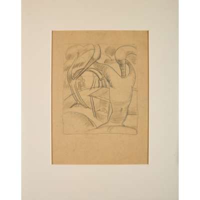 In 1933, having relocated to a converted windmill in Albrighton near Wolverhampton, he began to work on figurative red clay compositions which he fired at a local brickworks. Their curvature and solidity exhibit an affinity with the contemporary output of Henry Moore and Frank Dobson. These sculptures feature repeatedly throughout McCance’s still life paintings of the 1940s, and while McCance’s style had by this point changed substantially, his use of sculptural studio props endured.