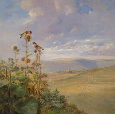 BULL FINCHES ON THE THISTLES