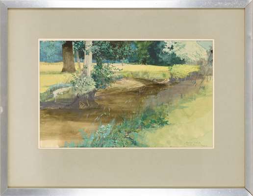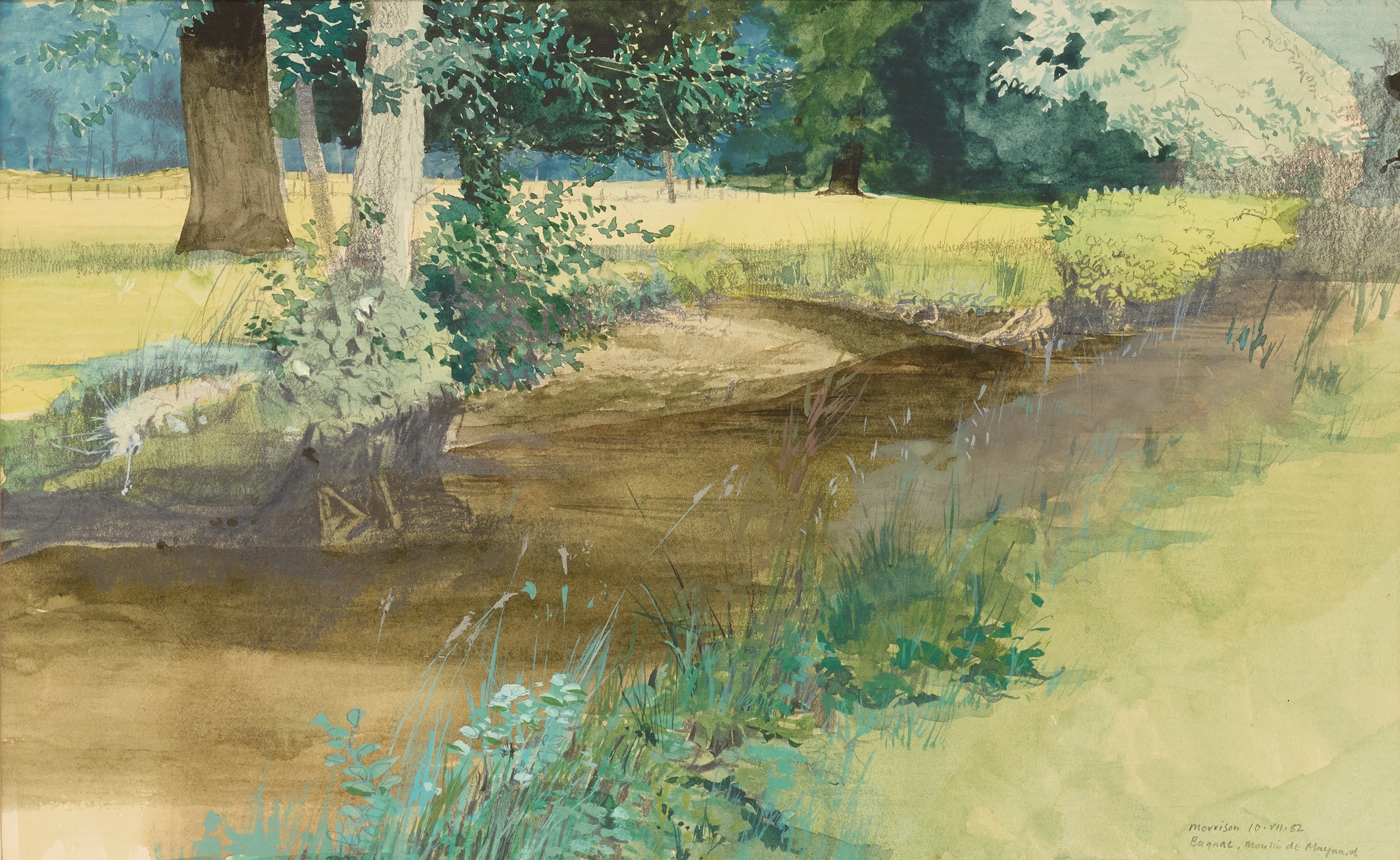 Signed, dated ‘10.VII.82’ and inscribed ‘Bagnac, Moulin de Maynard’ lower right, watercolour and pencil