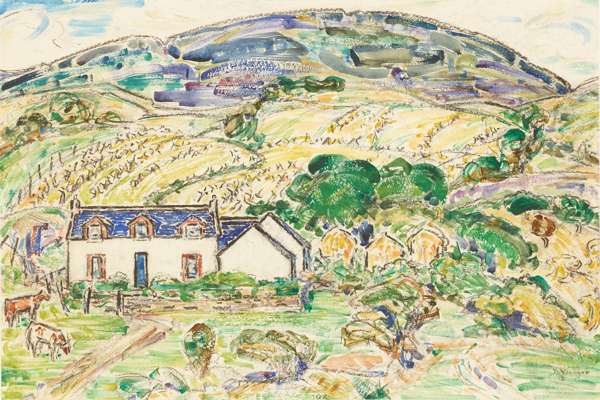 Signed lower right, watercolour and charcoal