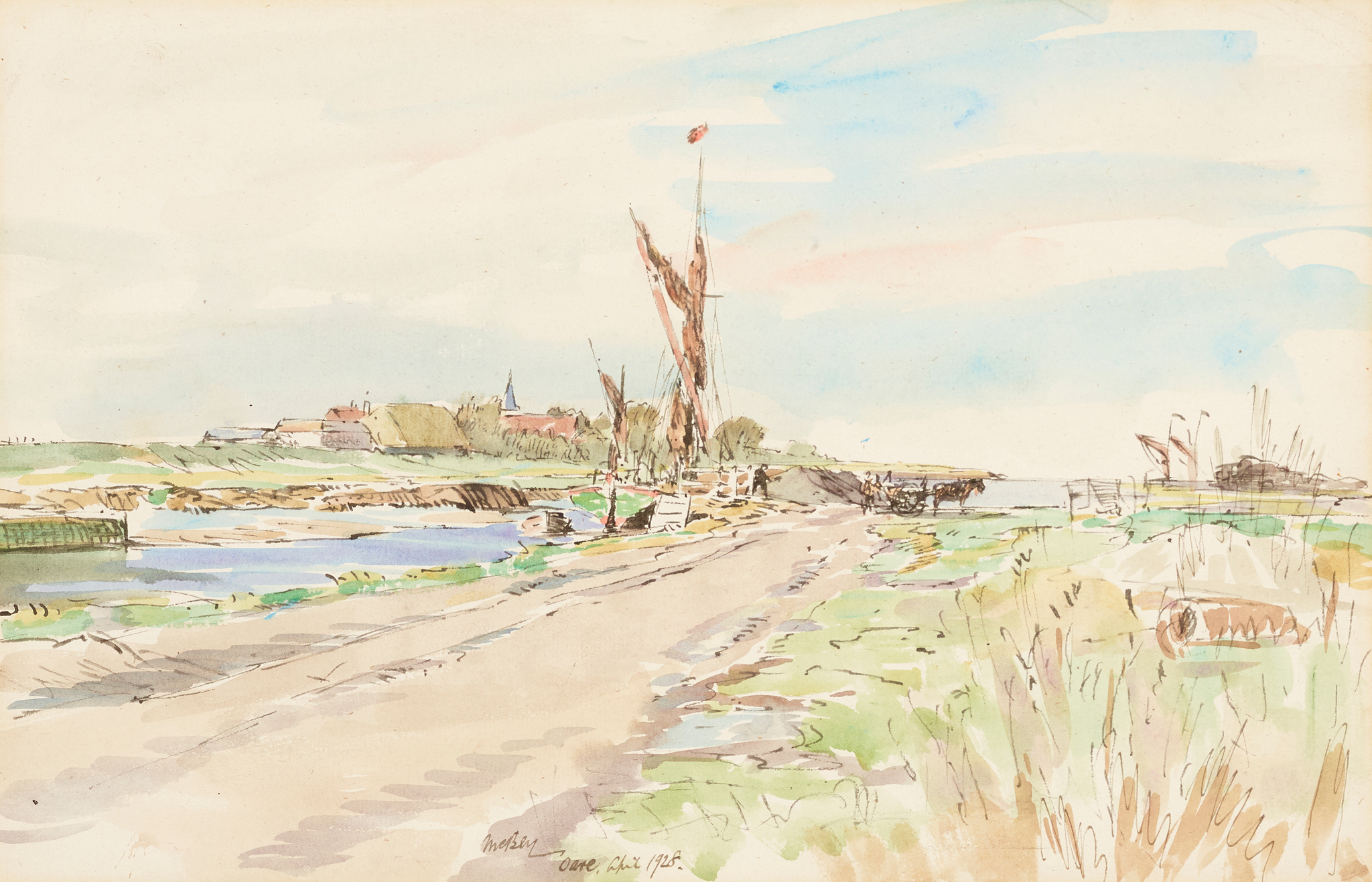 Signed, inscribed and dated April 1928 lower centre, watercolour, pen and ink