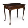 the rectangular top with a moulded edge over a plain convex frieze, raised on slender cabriole legs ending in pad feet