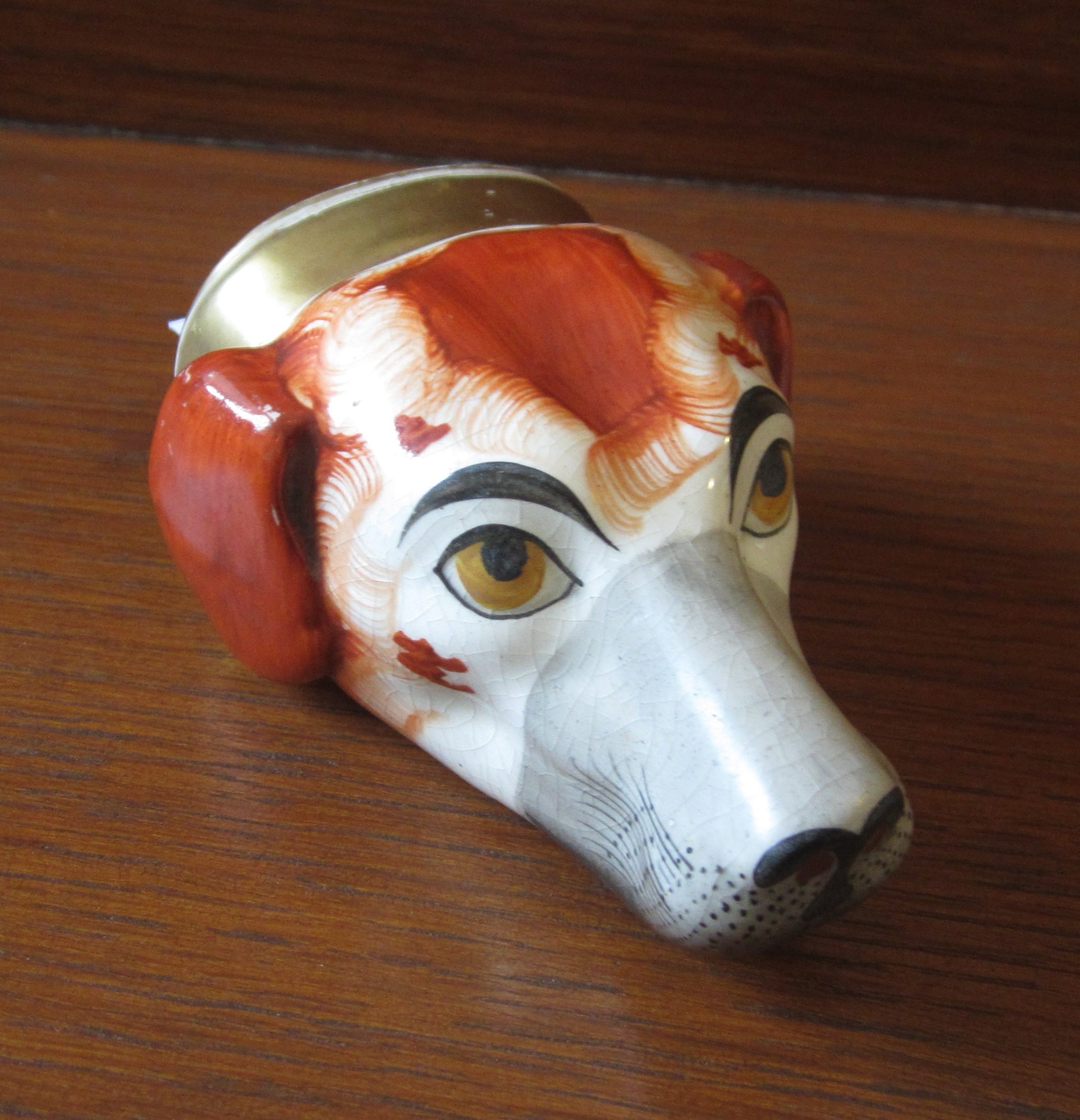 STAFFORDSHIRE POTTERY HOUND HEAD STIRRUP CUP