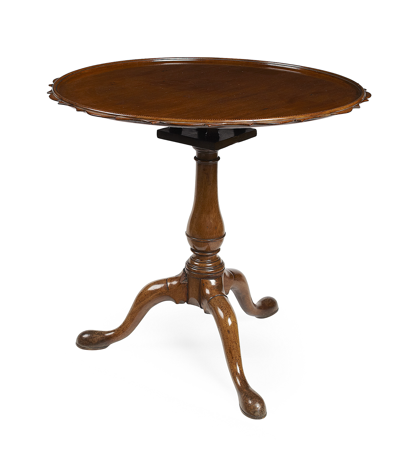 GEORGE III MAHOGANY AND HERRINGBONE INLAID BIRDCAGE TRIPOD TABLE