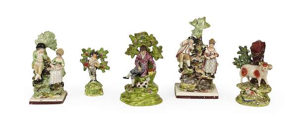 FIVE STAFFORDSHIRE POTTERY BOCAGE GROUPS