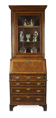 GEORGE II BURR YEW AND BOXWOOD LINED BUREAU CABINET