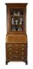 glazed door above a fall front opening to a fitted interior, over four long drawers, raised on later bracket feet