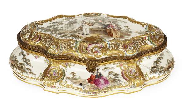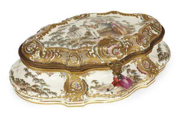 CONTINENTAL GILTMETAL MOUNTED PORCELAIN CASKET