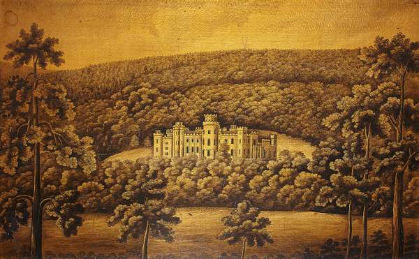 REGENCY PENWORK BOX DEPICTING DRUMTOCHTY CASTLE