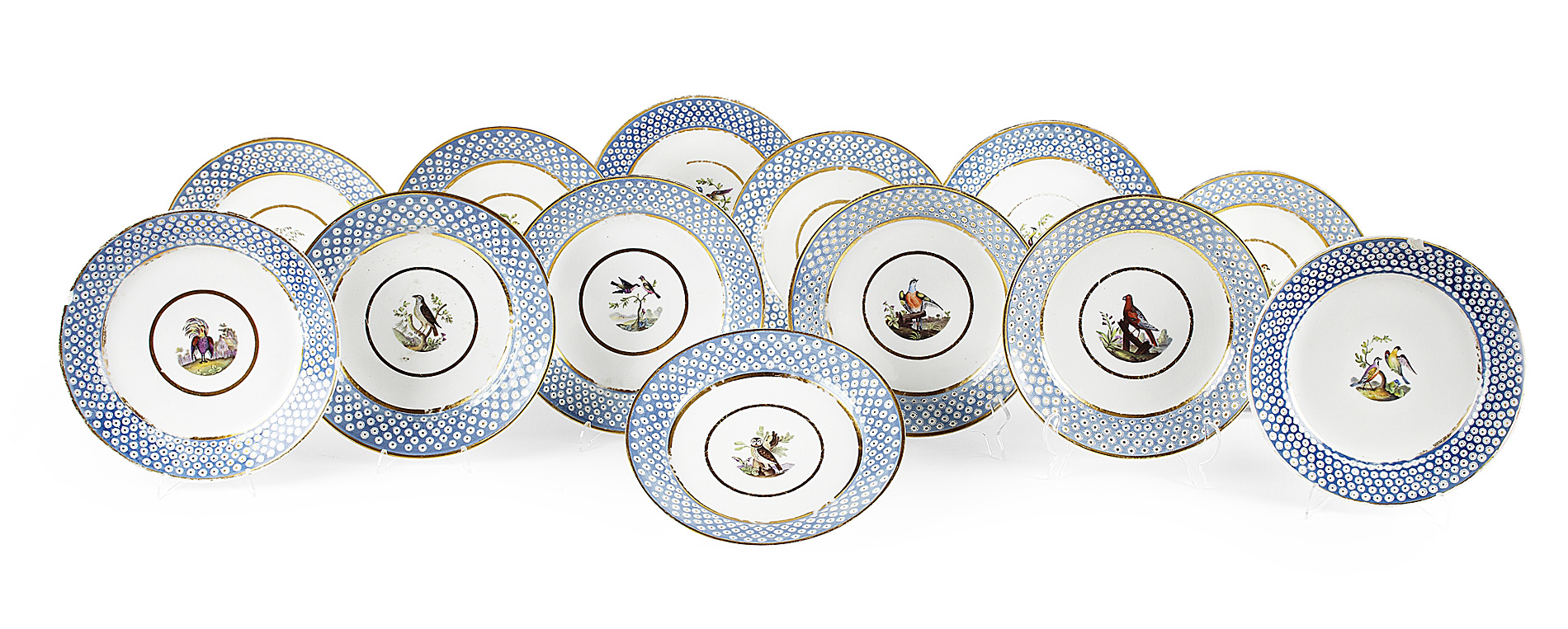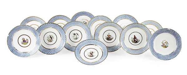SET OF EIGHTEEN PARIS PORCELAIN ORNITHOLOGICAL DINNER PLATES