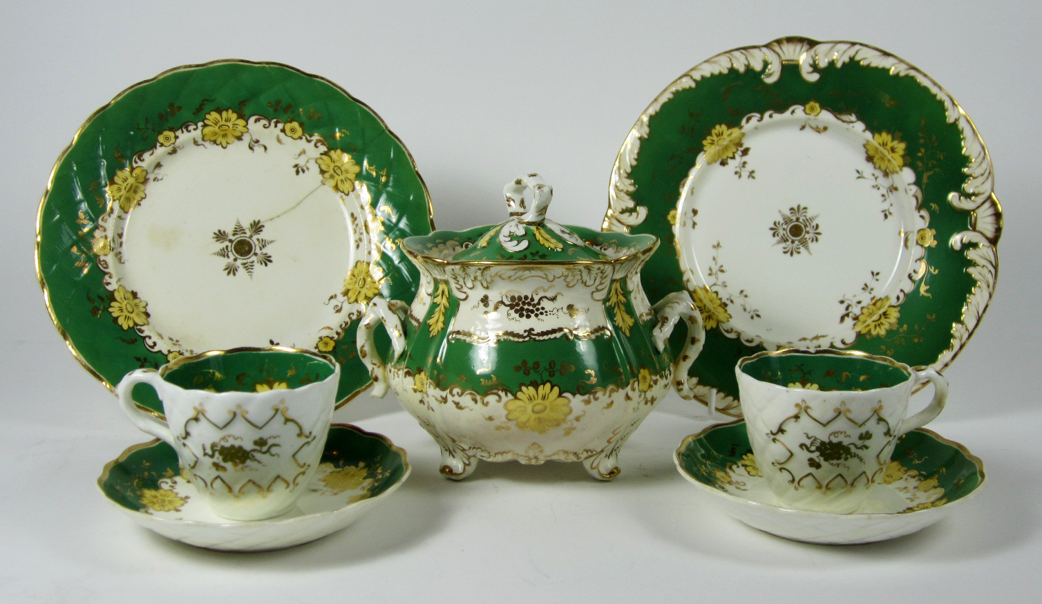 ASSORTED ENGLISH GREEN AND WHITE PART DESSERT SERVICES