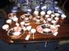 comprising: two shaped dishes, two circular dishes, seven saucers, eleven teacups, and eight coffee cups (qty)