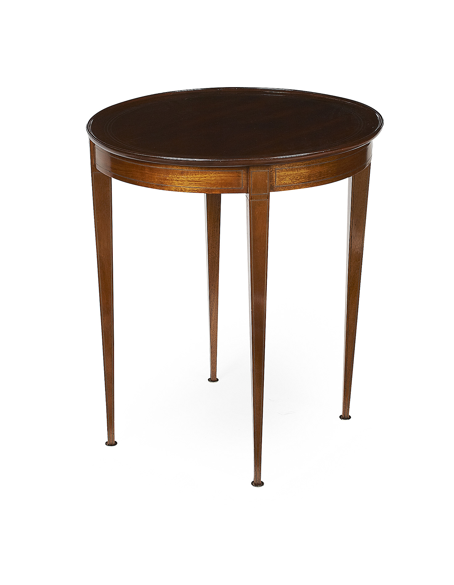 EDWARDIAN MAHOGANY AND BRASS INLAID OCCASIONAL TABLE