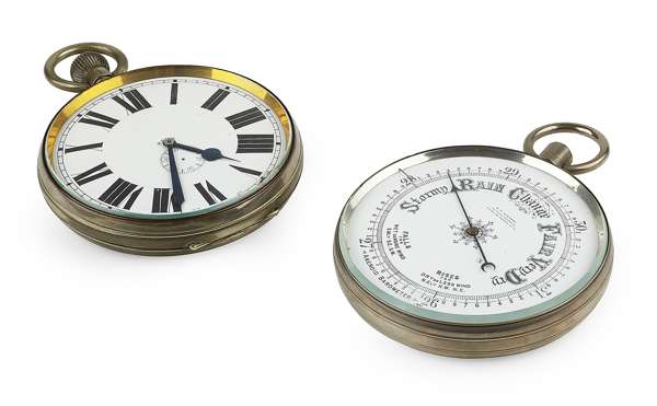 each with white enamel dial, the watch with 8-day Swiss movement, the barometer with barrel form (2)