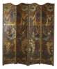 SPANISH PAINTED AND GILT LEATHER FOUR FOLD SCREEN