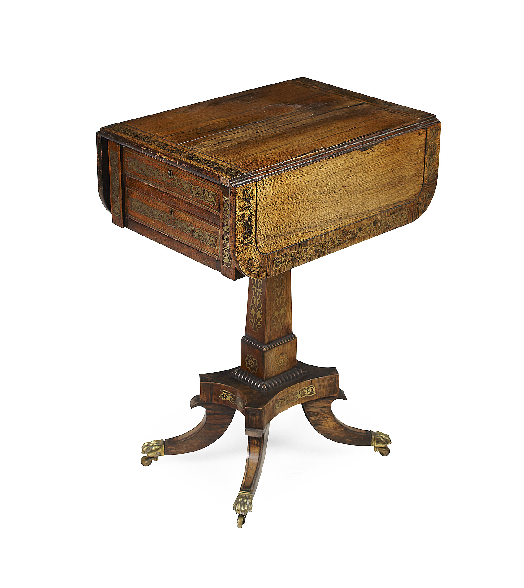 REGENCY ROSEWOOD AND BRASS INLAID WORK TABLE