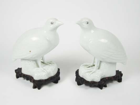 PAIR OF CHINESE EXPORT PORCELAIN BLANC DE CHINE BIRDS