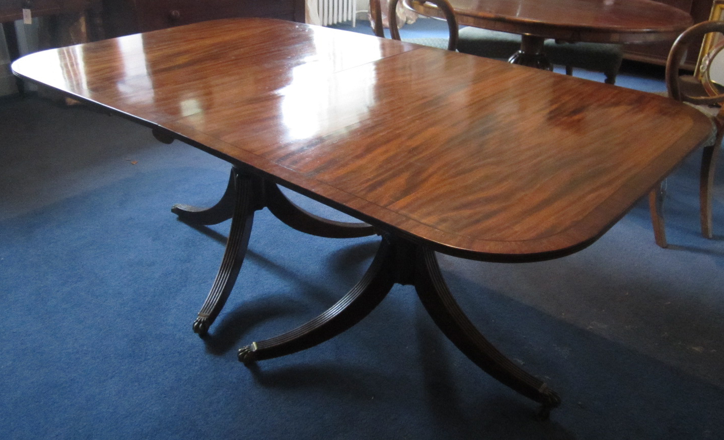 MAHOGANY CROSSBANDED TWIN PEDESTAL DINING TABLE