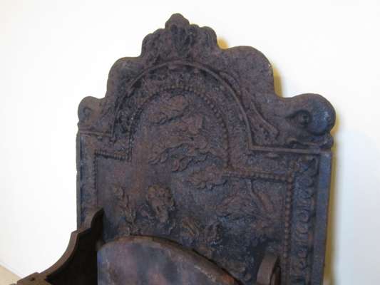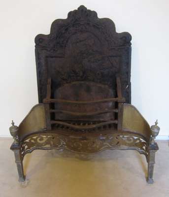 the back cast in relief with head and foliage, urn finials, serpentine pierced front