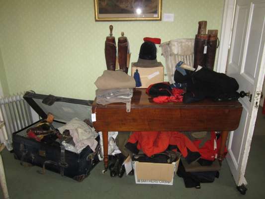 including: tin helmet, caps, riding boots, dresses, shoes etc (qty)