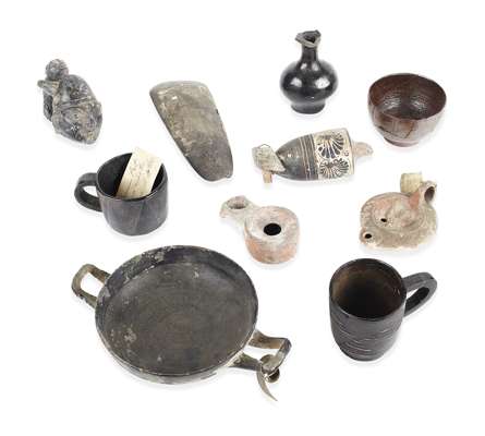comprising: Greek and Roman pottery vessels, a pre-Columbian pot shard, stone axe head etc. (qty)