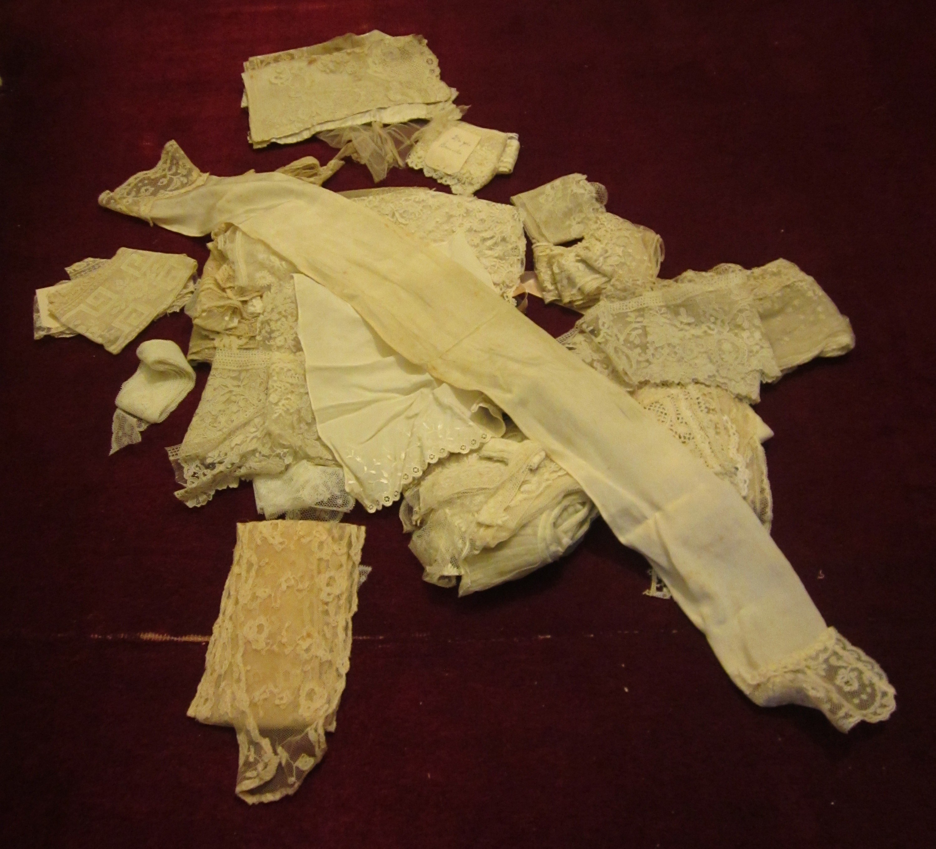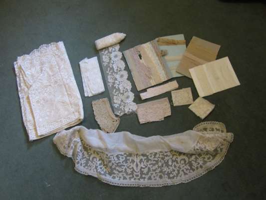 including: SAMPLES, COLLARS and FLOUNCING; and a QUANTITY OF WHITEWORKED HANDKERCHIEFS (qty)
