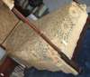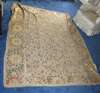 the cream field of joined sections, woven with allover foliate pattern, within rosette and vine border
