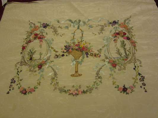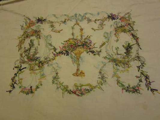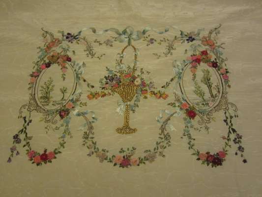 PAIR OF RIBBON WORKED AND EMBROIDERED SILK PANELS