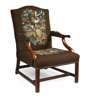 GEORGE III MAHOGANY FRAMED AND UPHOLSTERED GAINSBOROUGH ARMCHAIR