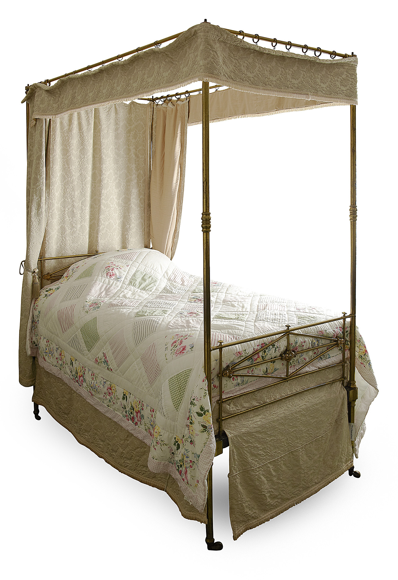 PAIR OF VICTORIAN BRASS FRAMED SINGLE FOUR POSTER BED