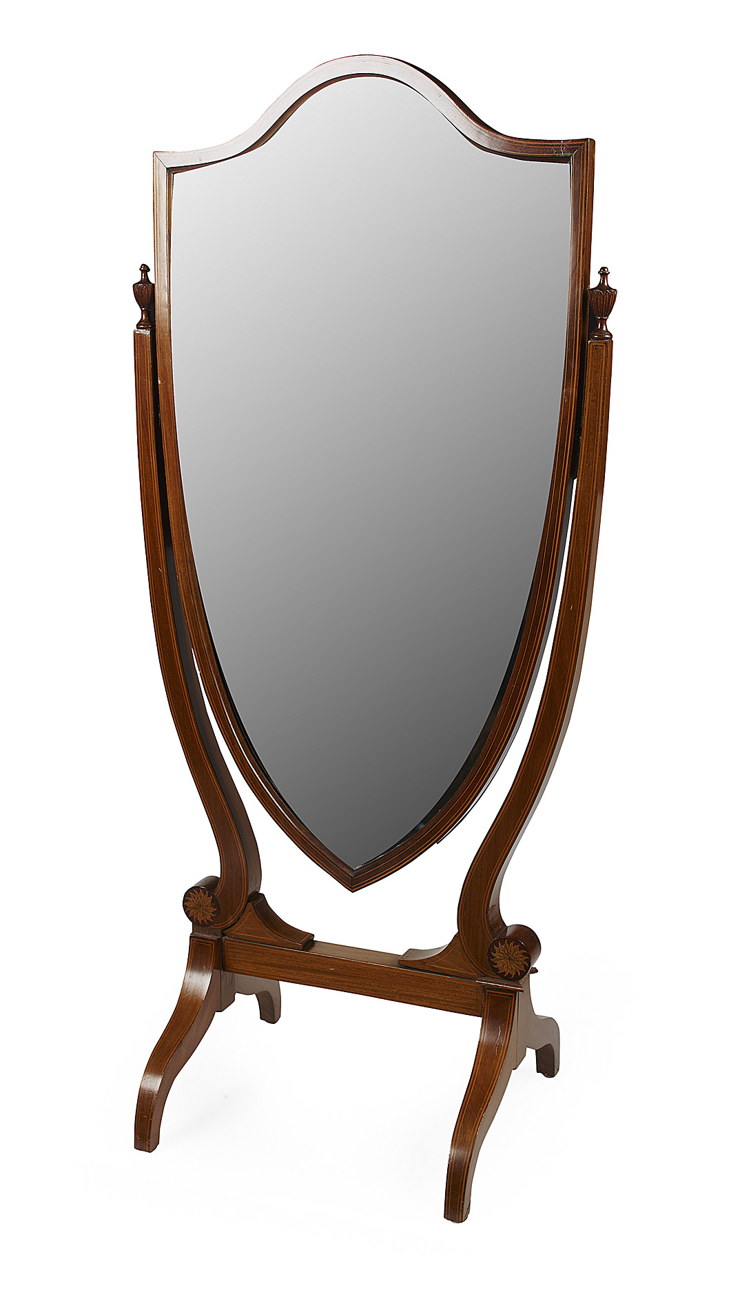 EDWARDIAN MAHOGANY BANDED CHEVAL MIRROR