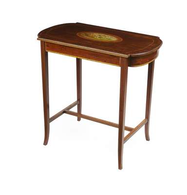 EDWARDIAN PAINTED SATINWOOD AND MAHOGANY OCCASIONAL TABLE