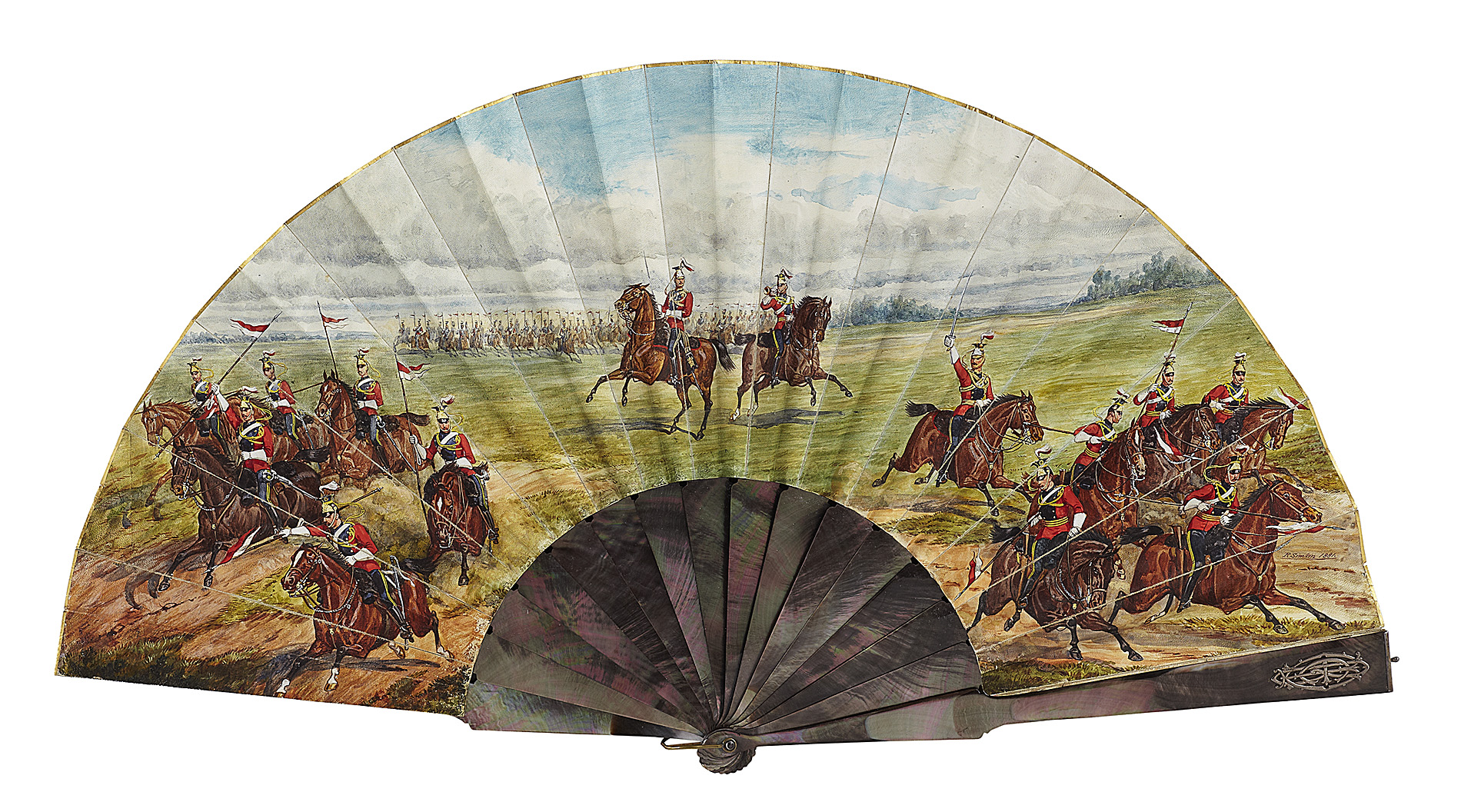 with a scene of the 16th Lancers charging, regimental crest to rear
