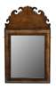 of William & Mary style, with an arched scroll cut cresting and rectangular mirror plate in a cushion moulded frame