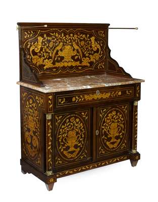 DUTCH MAHOGANY AND MARQUETRY INLAID WASH STAND
