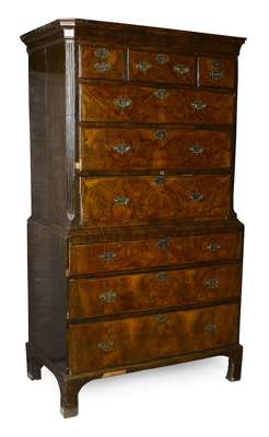 GEORGE II WALNUT AND CROSSBANDED CHEST ON CHEST