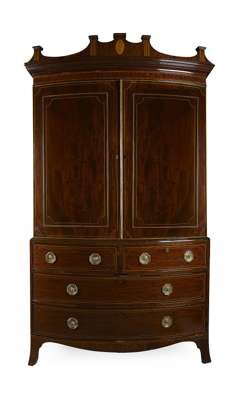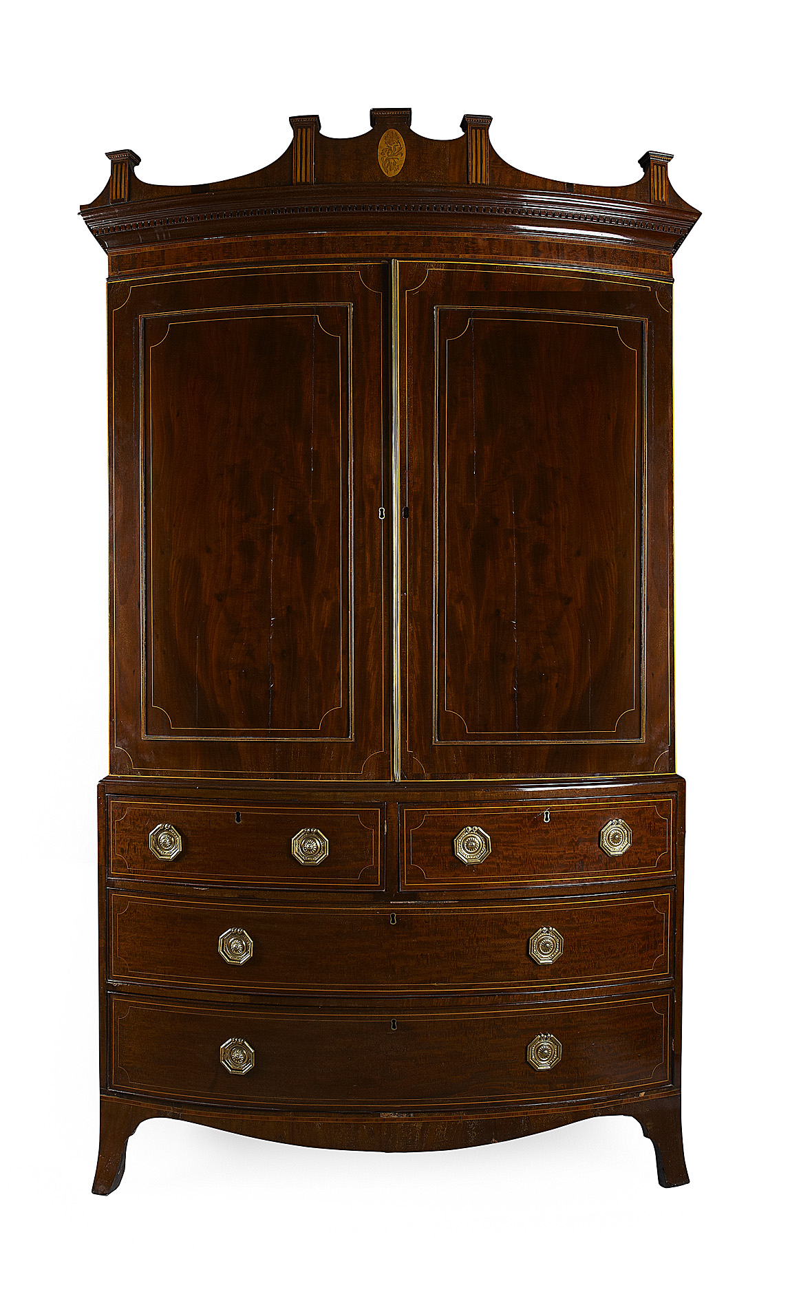 VICTORIAN MAHOGANY AND INLAID BOWFRONT LINEN PRESS