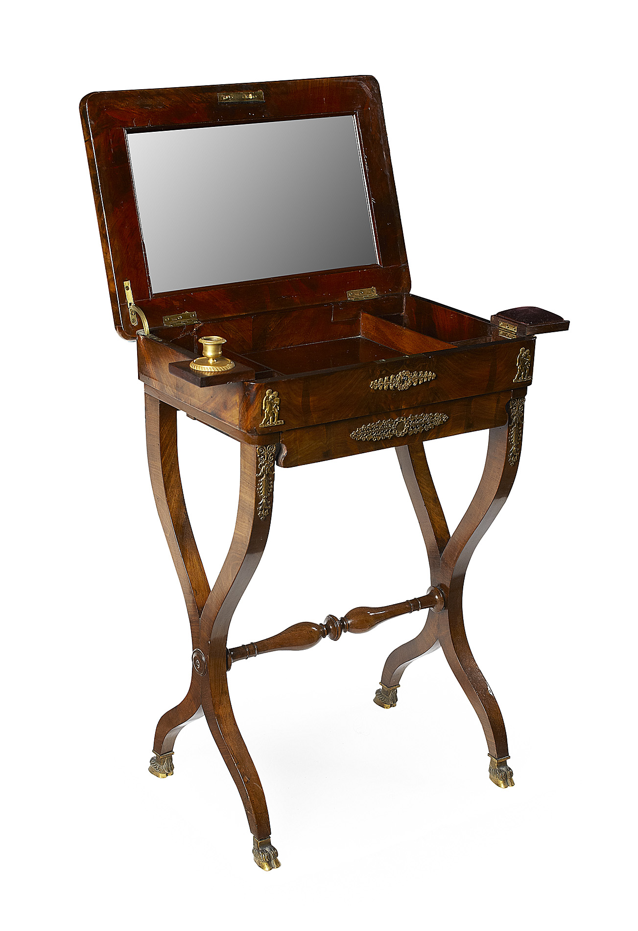 FRENCH EMPIRE MAHOGANY AND GILT METAL MOUNTED DRESSING TABLE