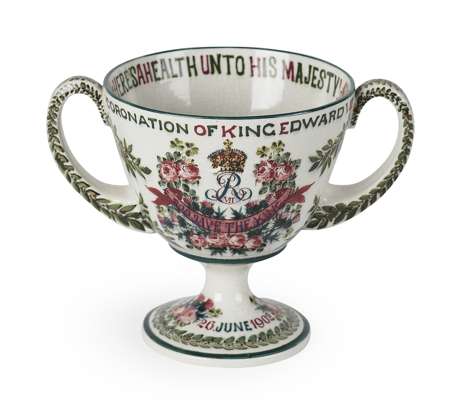 WEMYSS POTTERY TWIN HANDLED EDWARD VII CORONATION GOBLET